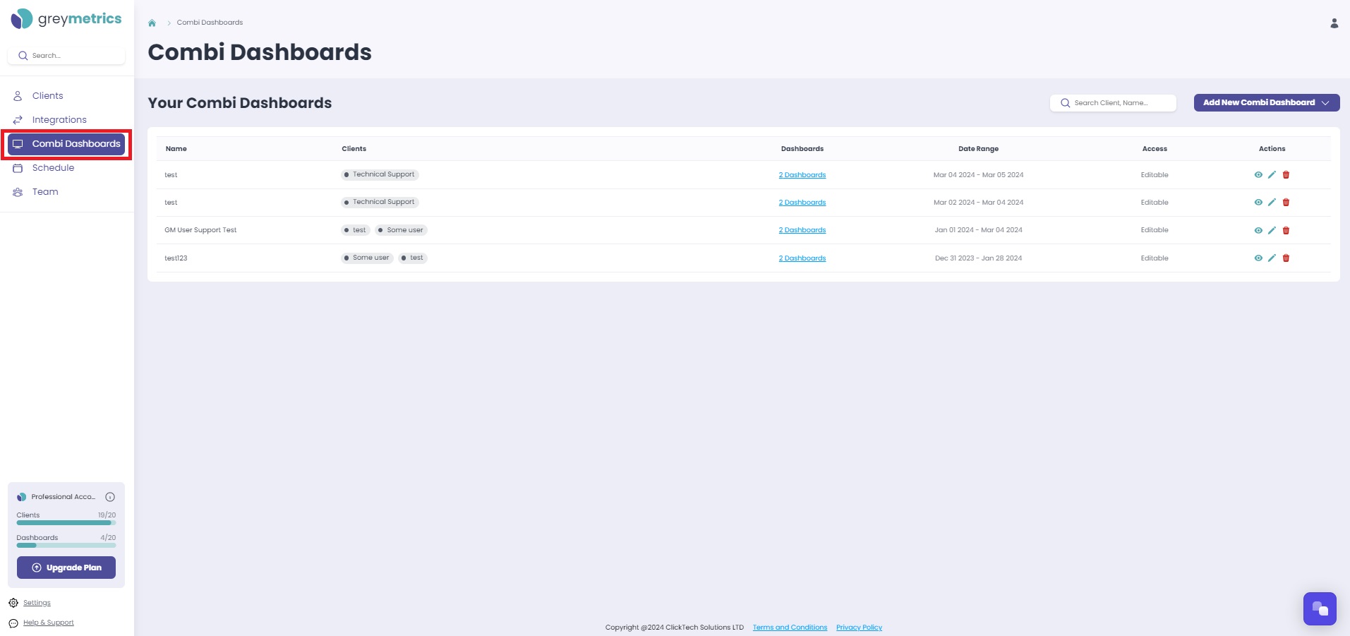 NOTE - A Combi Dashboard can contain Dashboards from a single Client up to a maximum of 15 Clients